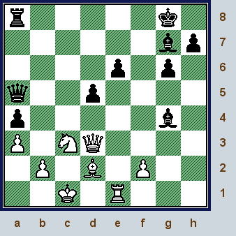 r5k1/6bp/4p1p1/q2p4/p5b1/P1NQ4/1P1B1P2/2K1R3; (The game is over, this is the final position.)