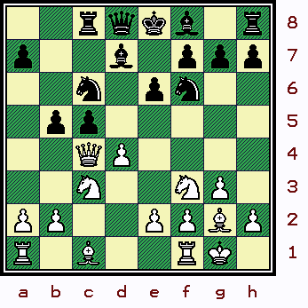 13.Bg5!? Be7; {Diagram?} [ Interesting was: 13...Nc4!?; "~" {D?} with good play for Black. ]