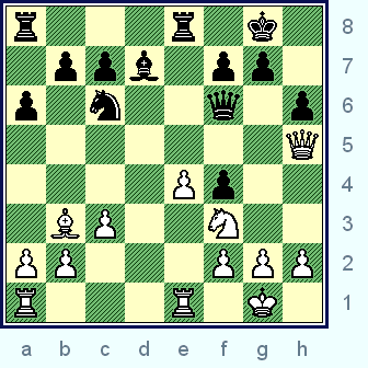 White to move in this position. (17.???) It is White to play and move in this position. (The first player is having one of the best tournaments of his whole life, the second player is no slouch, either! If you are stumped, check out what happened in the course of the actual game.) Chess Puzzle # 15